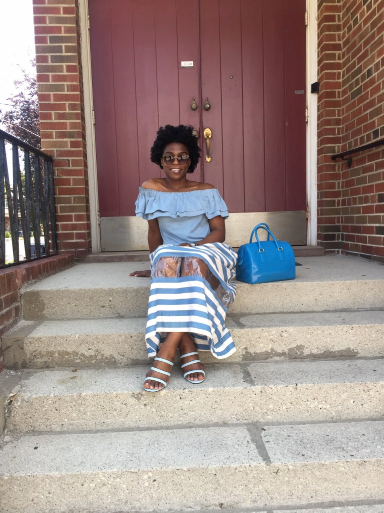 I was not sure how to title this post and then the phrase “I Got the Blues” came to me. Not sure if it is from a song or what, but I found it befitting. After church, my friend and I went to have brunch: Chicken and Waffles. It was good but I knew pictures of my outfit will make the day even better 🙂